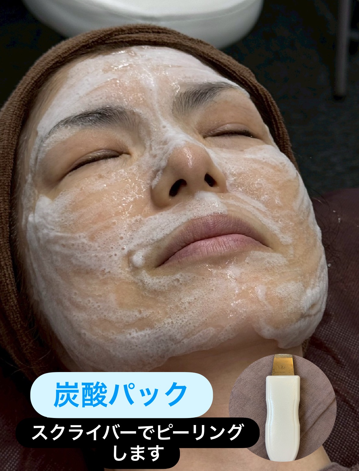 ★炭酸パック(パック後クリニック機器でピーリング付き)